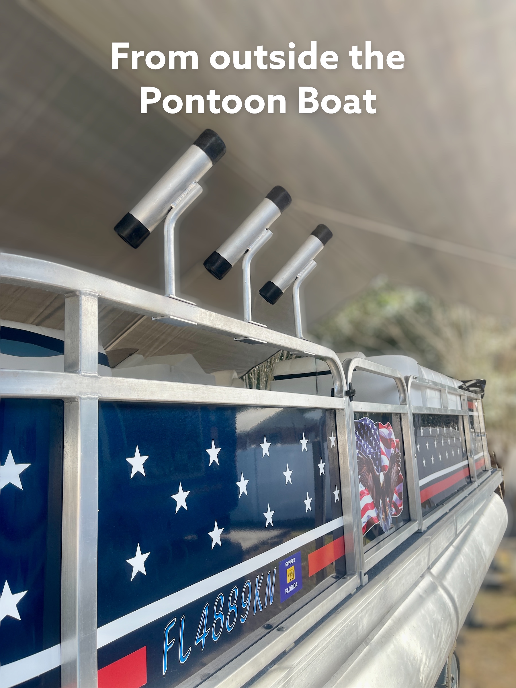 You receive a pair, one right and one left rod holder. These Fishing Pole holders slide over your pontoon rails from inside the boat with no screws, bolts, or glue. NO DRILLING NEEDED. Physics at its best. No matter how big your fish is, he would have to rip the side of your boat off before he would pull these fishing solutions off your boat. Angled perfectly for maximum stability too.