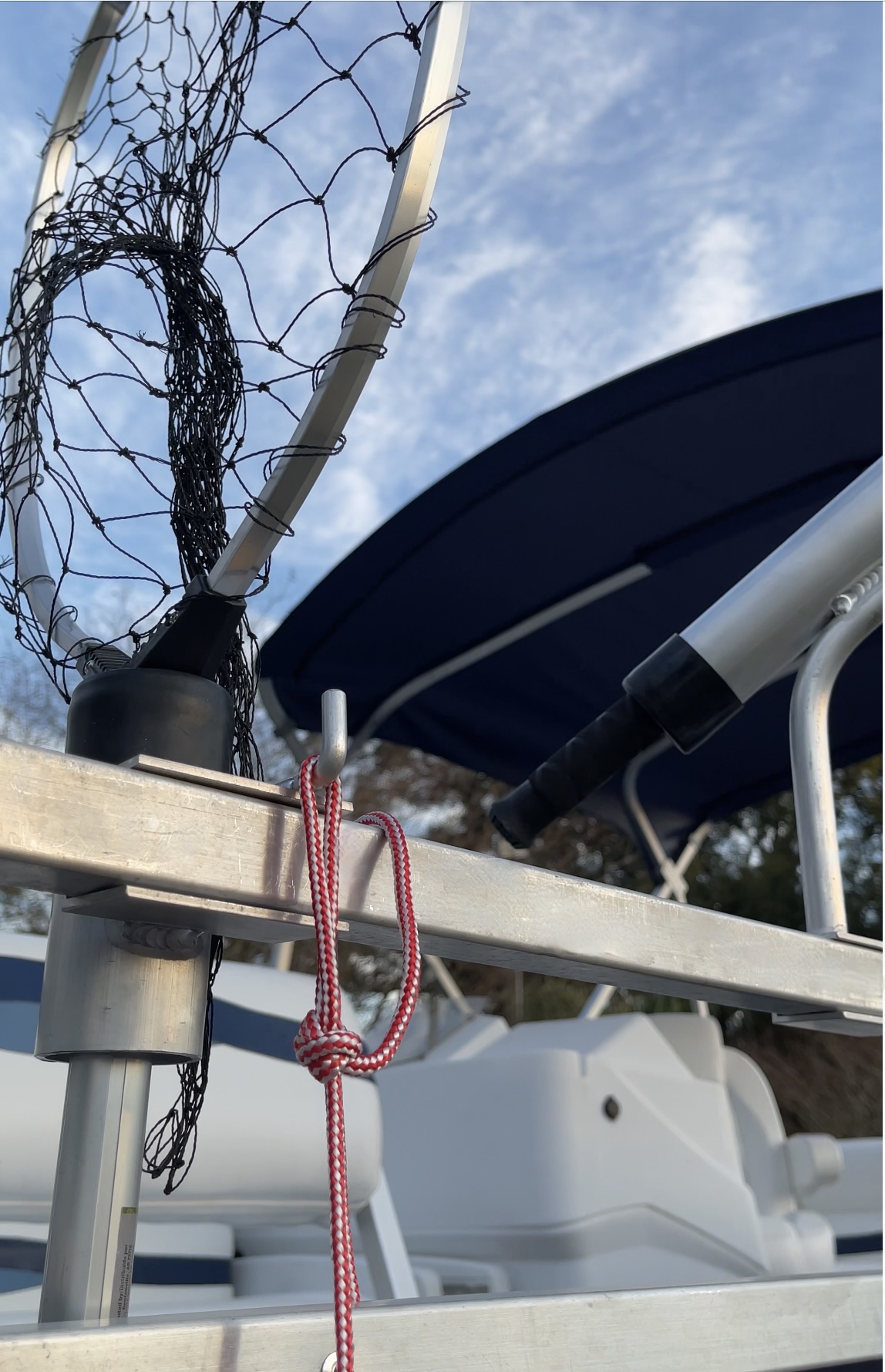 The Pontoon Boat Fishing Net Solution is a simple solution for keeping your fishing net always within reach. No screws, glue, nuts, or bolts. Made from 2″ marine-grade 6063 aluminum tube with a rubber guard to protect the handle of your fishing net from damage. Simply slide the Fishing Net Solution on or off your pontoon boat rails with little to no effort. The simple ¼” x 1″ riser is designed to hold a bait bucket, or fishing chain stringer in the water. It’s a simple solution to not having a livewell.
